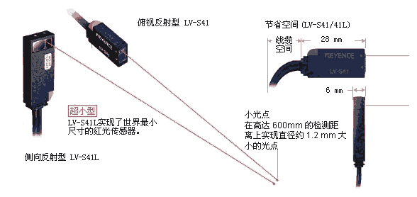 LV-S41L 小光点回归反射型数字激光传感器超小型, 直线光束, 回归反射型